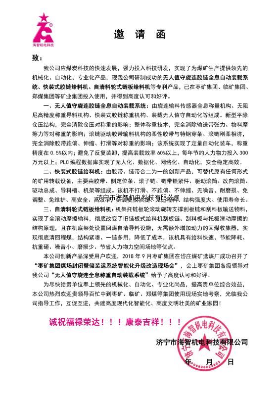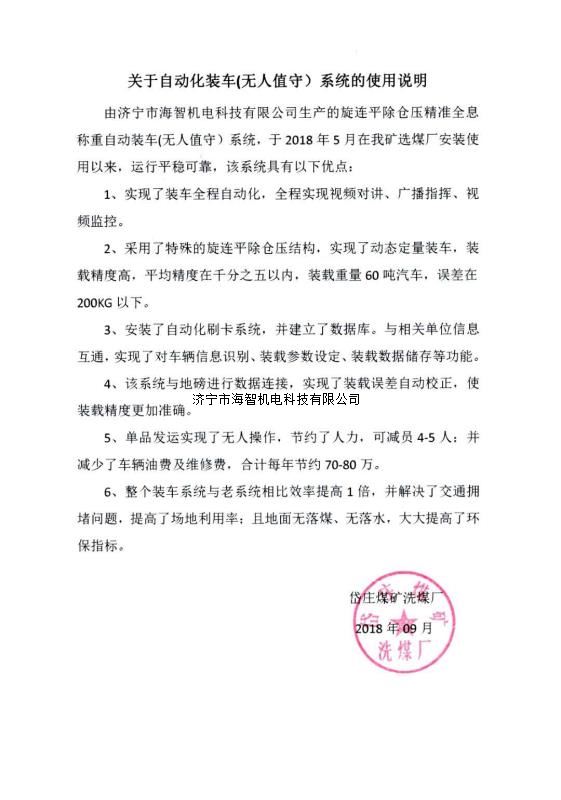 本產(chǎn)品一經(jīng)推出即獲得各大設(shè)計(jì)院及用戶的一致好評,率先在棗礦集團(tuán)岱莊煤礦取得成功應(yīng)用,2018年9月受邀參加了《棗礦集團(tuán)煤場封閉暨儲(chǔ)裝運(yùn)系統(tǒng)智能化升級(jí)改造現(xiàn)場會(huì)》,智能裝車系統(tǒng)得到了充分肯定!我司憑借雄厚的加工制造實(shí)力及過硬的創(chuàng)新技術(shù)能力,勢必為運(yùn)輸稱重系統(tǒng)、快速計(jì)量裝車系統(tǒng)帶來又一次的技術(shù)創(chuàng)新變革。